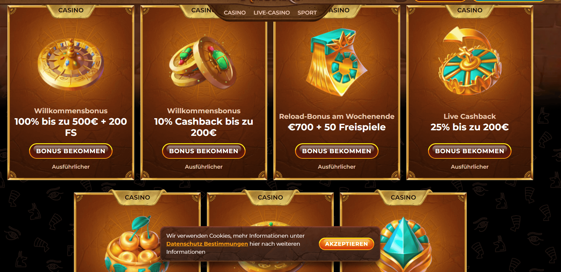 Las promociones y eventos son abundantes; en AmunRa es difícil cansarse, ya que el casino online cuenta con una afluencia constante de nuevas campañas y videojuegos, contando con más de 2000 en el momento de su creación.